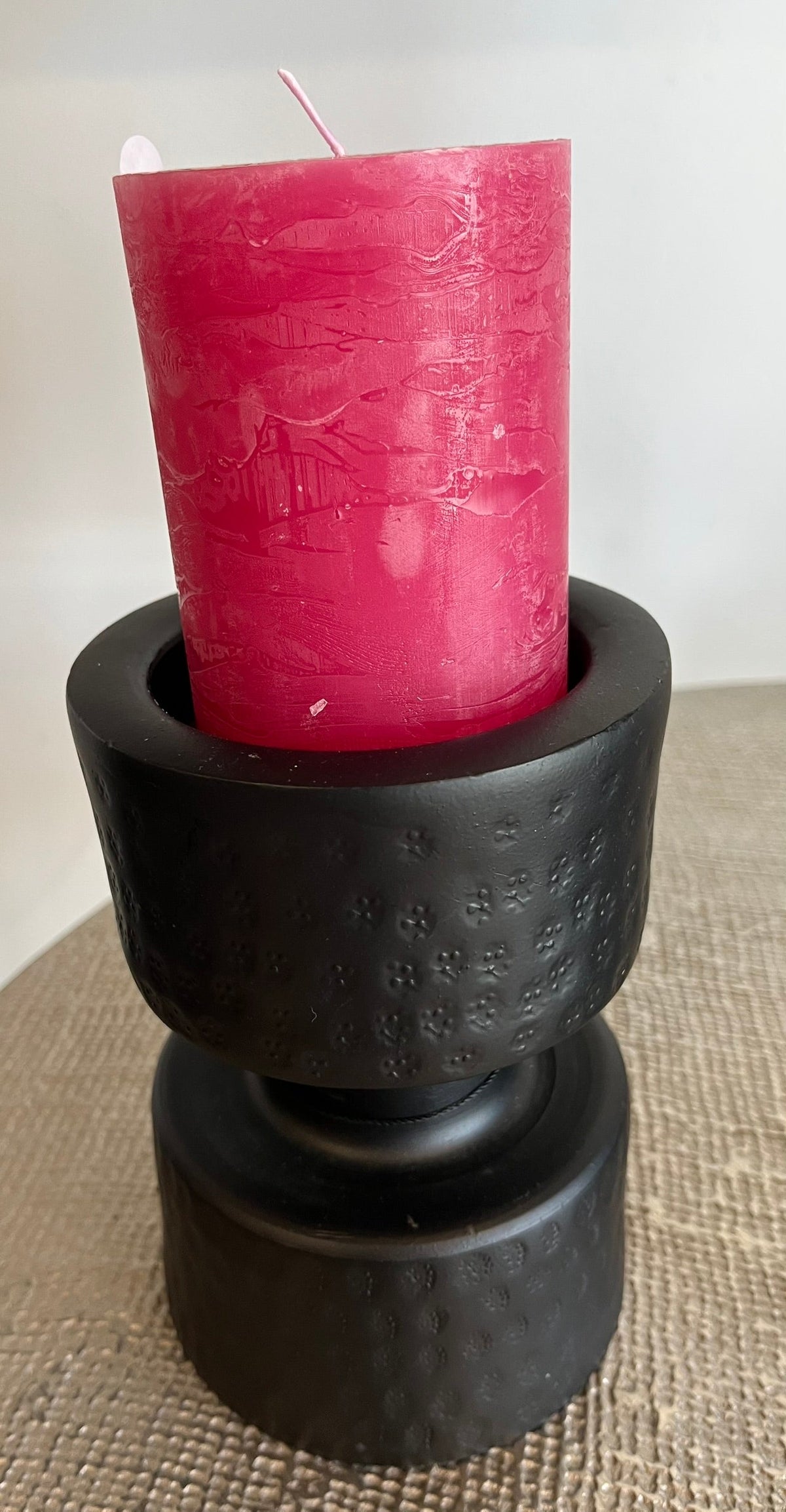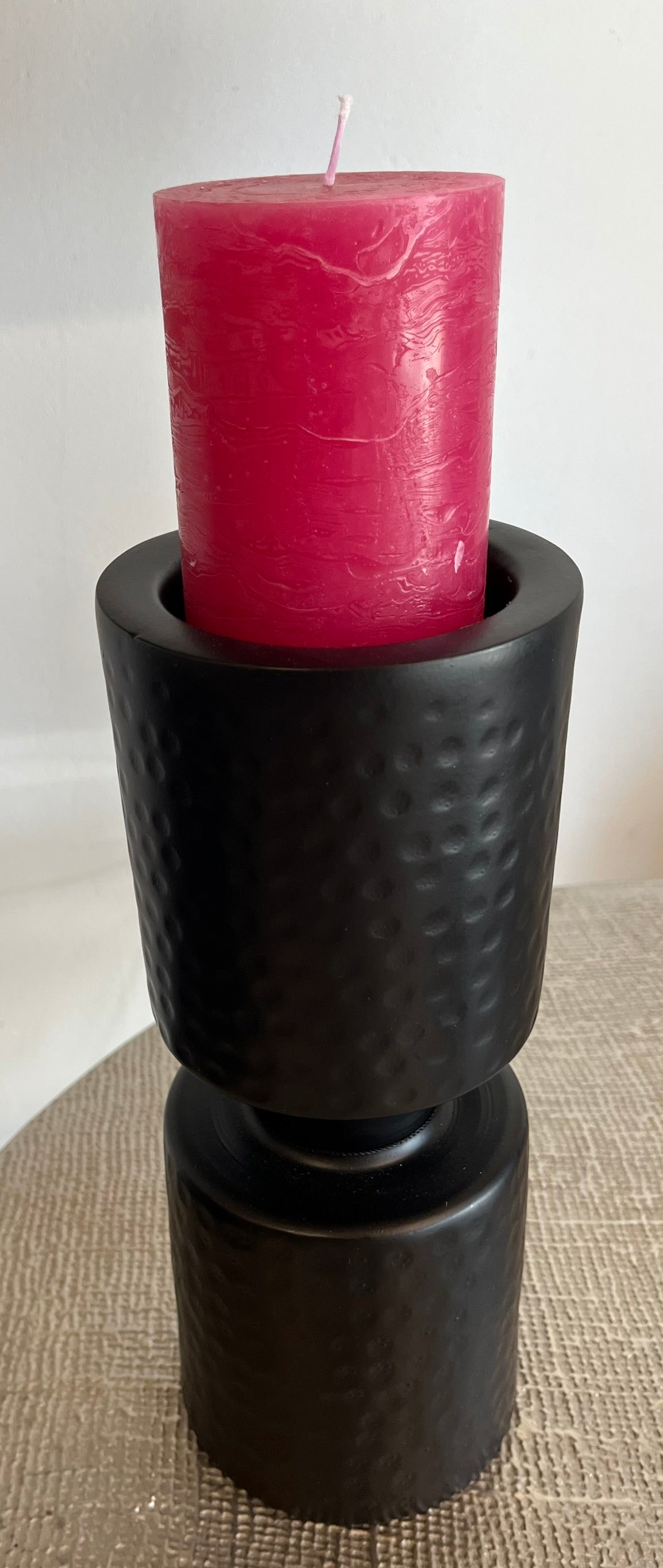Dieser elegante Kerzenständer aus Metall überzeugt mit seinem modernen Design und seiner angenehm leichten Qualität. Perfekt geeignet für Stumpenkerzen bringt er stilvolle Akzente auf deinen Tisch, dein Regal oder die Fensterbank. Ideal zum Kombinieren mit weiteren Wohnaccessoires – für ein stimmiges, modernes Ambiente.